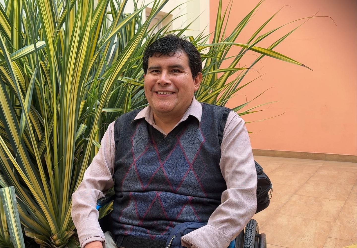 Juan Vásquez, es administrador del Conadis. Sufrió una secuela de polio, lo que ocasionó su perdida de movimiento.